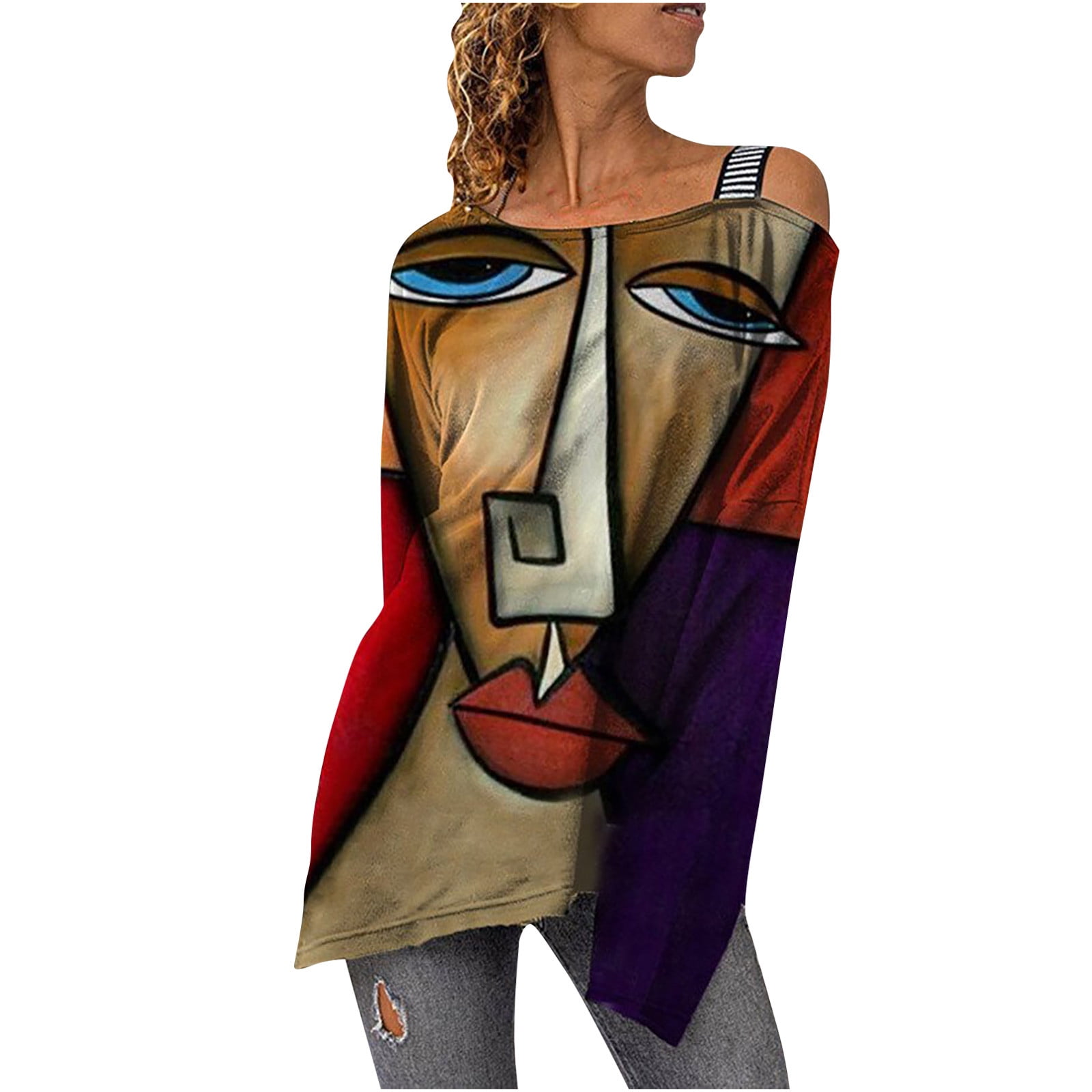 Women S Long Sleeve Round Patched Color Block Women Fashion Vintage Long Sleeve Printed Off Shoulder Top T Shirt Cold Shoulder Tops For Women Walmart Com